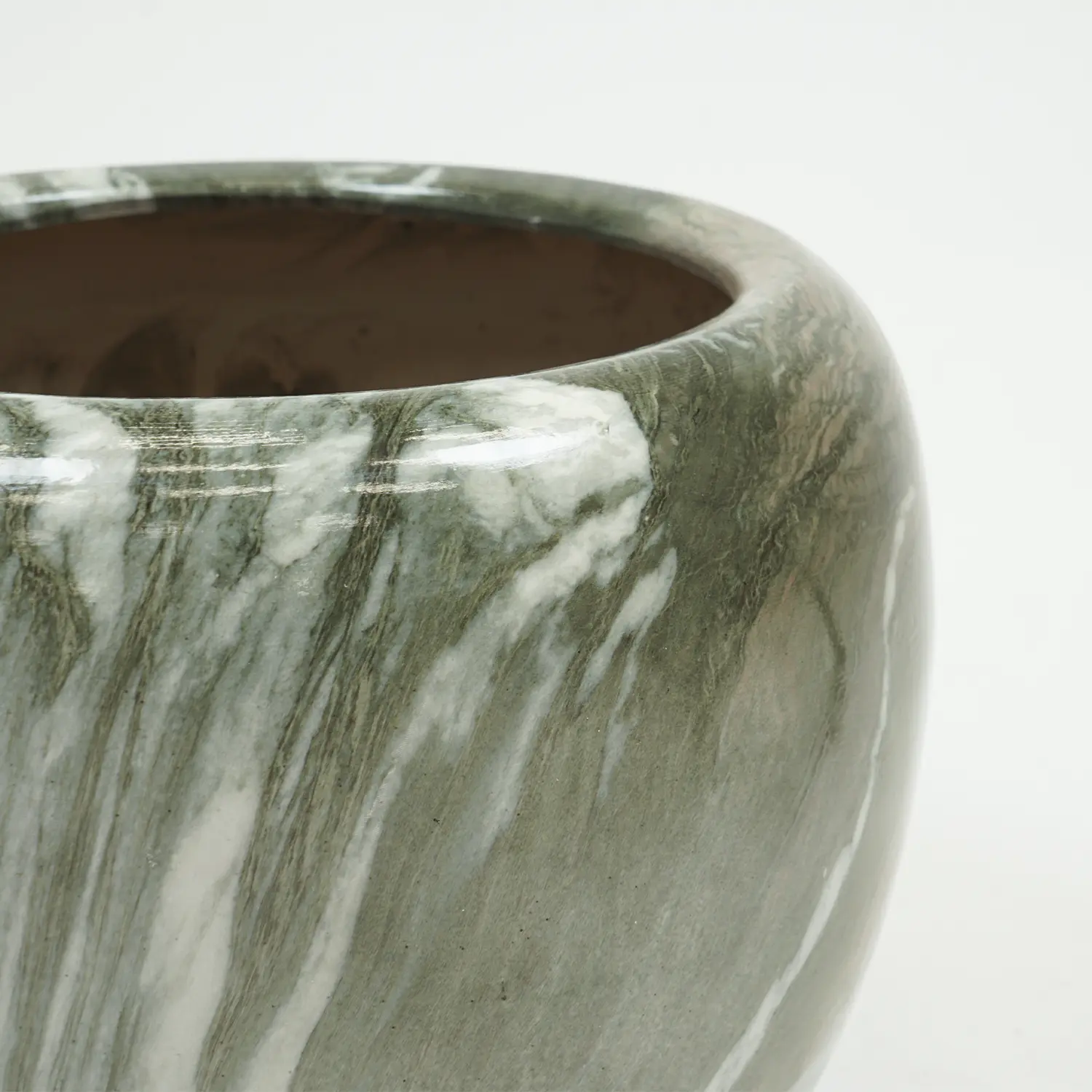 Deze bloempot heeft een karakteristieke buikvorm met een evenwichtig en verfijnd ontwerp. De zachte rondingen zorgen voor een decoratieve uitstraling zonder de plant te overheersen, waardoor de plant mooi centraal blijft staan. De groene afwerking versterkt het natuurlijke karakter van de pot en laat planten extra goed tot hun recht komen.
