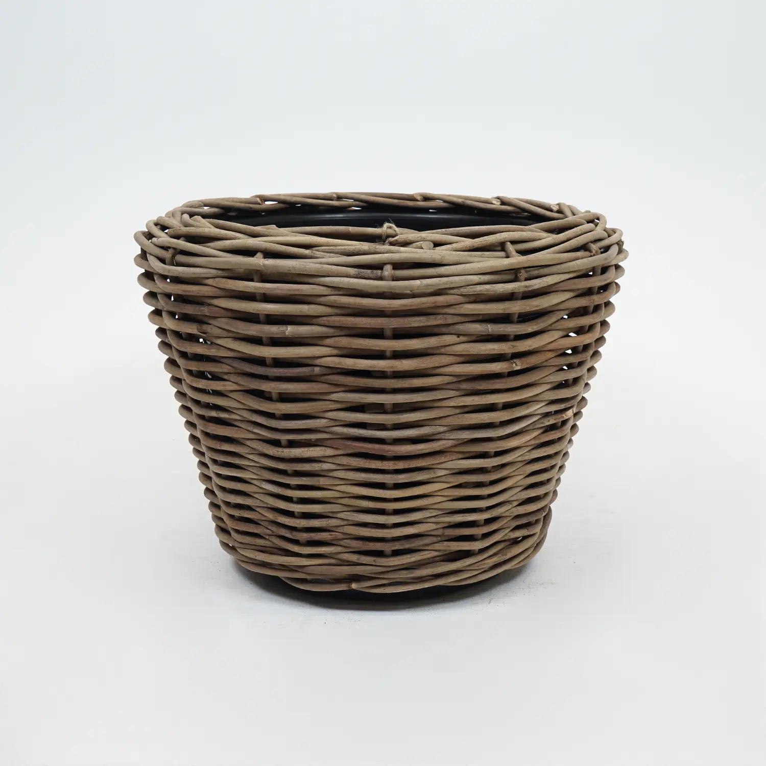 De plantenmand is vervaardigd uit rotan. Rotan is sterk, duurzaam, recyclebaar, onderhoudsvriendelijk en weersbestendig. Toch kan het materiaal na verloop van tijd verkleuren en/of verzwakken door bijvoorbeeld de regen. Doordat het rotan niet in contact komt met de ondergrond, duurt dit wel wat langer. Verder is de binnenkant van de mand bedekt met gerecycled plastic. Dit voorkomt het lekken van water of zand.
