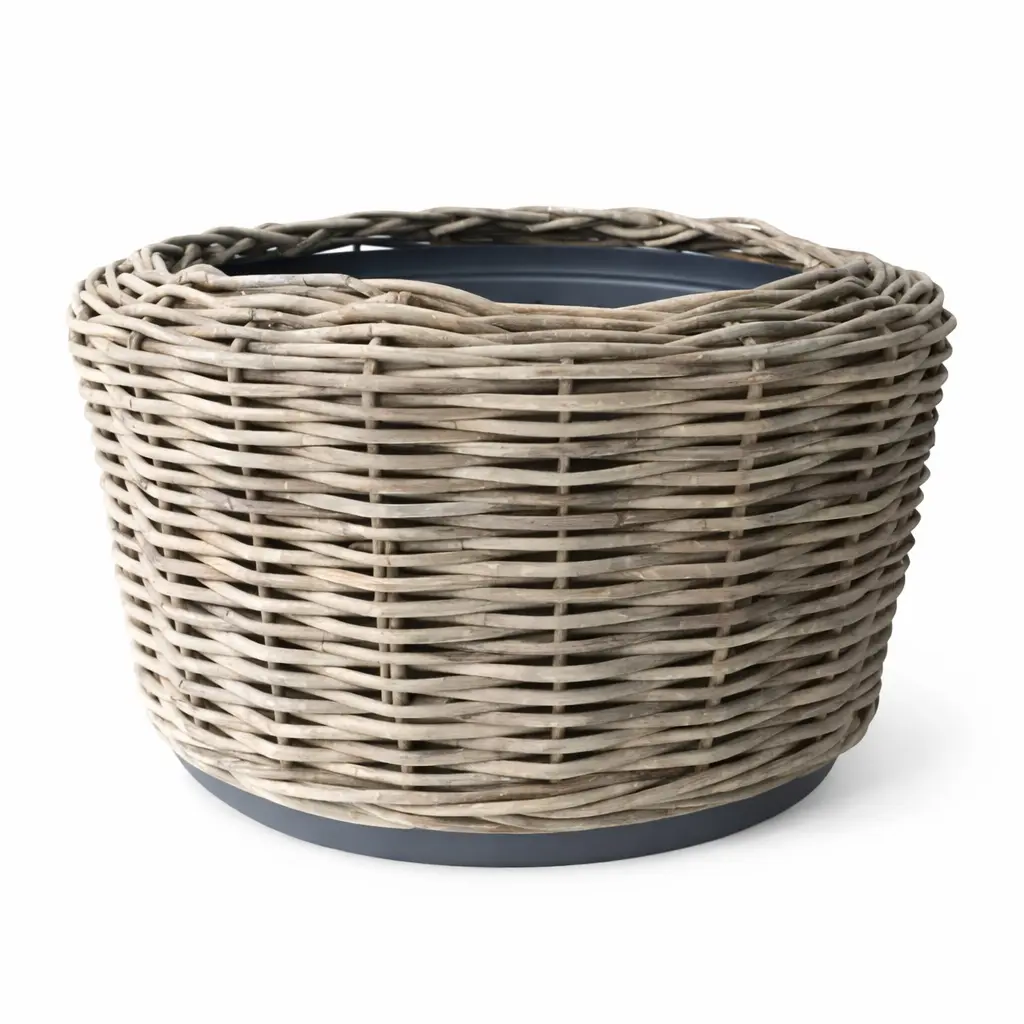 De pot bestaat uit hoogwaardig kunststof met een rotan-look die onderhoudsvriendelijk is en jarenlang mooi blijft. Dankzij de waterdichte constructie kun je planten direct in de pot plaatsen zonder dat je je zorgen hoeft te maken over vochtproblemen. Bovendien is hij weerbestendig, waardoor je hem binnen maar ook buiten kunt gebruiken. Dit maakt de pot ideaal voor groene planten, palmplanten, olijfbomen of grote sierplanten die wat extra ruimte nodig hebben.