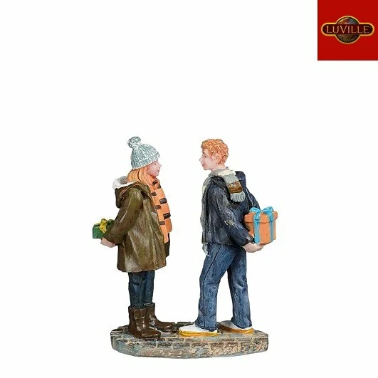 Kerst draait bij veel mensen om het samenzijn met familie en vrienden. Ook worden er vaak cadeautjes aan elkaar gegeven. Deze elementen mogen dan natuurlijk ook niet ontbreken in jouw kerstdorp. Bij de Giving presents l5b2.5h7cm van het merk Luville Efteling zie je een sfeervol en romantisch tafereel waarbij een jongen en een meisje een cadeautje voor elkaar hebben gekocht en dit aan elkaar gaan geven. Het is daarom leuk om dit tafereeltje te plaatsen bij een vrolijk kerstfeest in het dorp, bij de deur van een kersthuisje of onder de mistletoe. Denk hierbij aan de Pine Peak retreat, de Christmas Cabin of de Sunny Springs Lodge. Door kerstminiaturen met elkaar te combineren, ontstaan er leuke scènes die het kerstdorp sfeervoller en completer maakt.