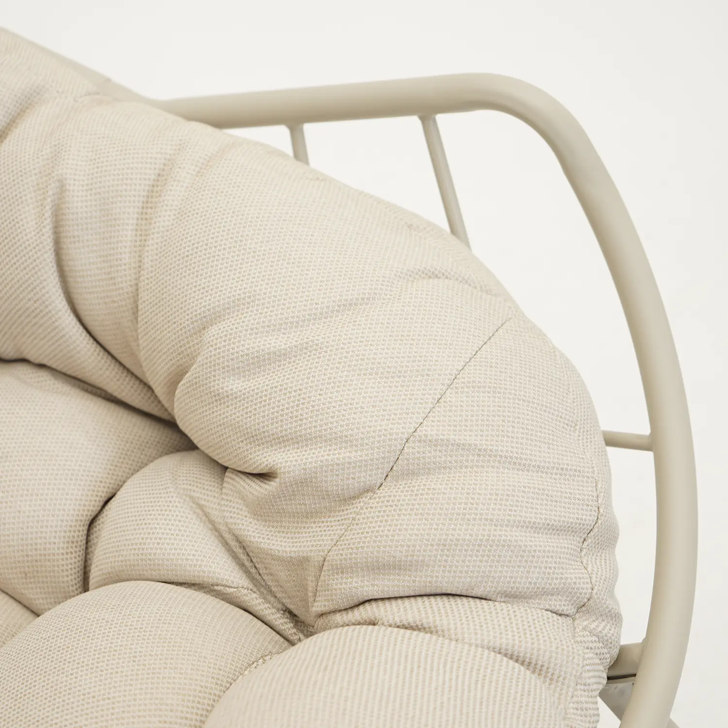Het frame van de schommelstoel is vervaardigd uit gepoedercoat staal. Dit is een stevig, slijtvast, krasbestendig en weerbestendig materiaal dat door de coating extra beschermd is tegen krassen, stoten en weersinvloeden. Ondanks zijn weersbestendigheid raden wij wel aan om de stoel onder een overkapping te plaatsen, omdat het materiaal anders kan gaan roesten.