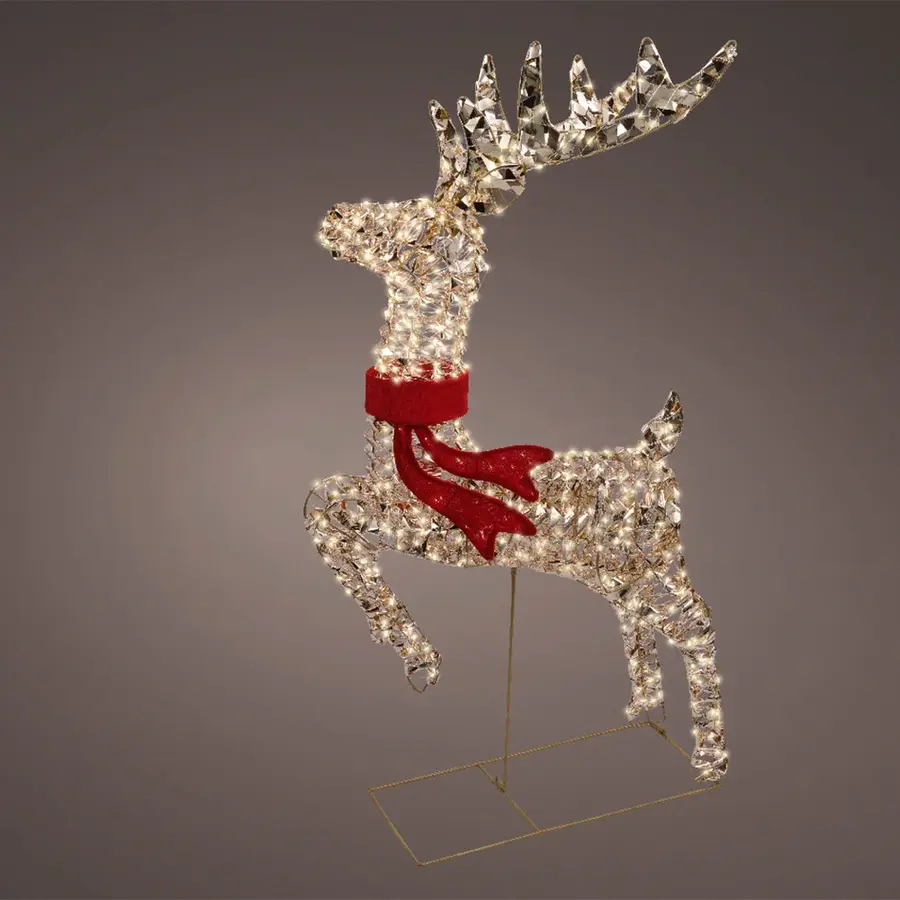 Deze gouden rendierdecoratie van Lumineo is een opvallende toevoeging voor je kamer of tuin. Met een hoogte van 100 cm en 720 kleine LED-lampjes geeft het een warme, gezellige sfeer zonder dat het overdreven is. Het frame is van kunststof en kan tegen een stootje. Je kunt ’m zowel binnen als buiten gebruiken – handig voor de feestdagen of gewoon als sfeerverlichting. Er zit ook een timer op, dus je hoeft niet elke keer zelf aan of uit te zetten. En dankzij de warm witte verlichting ziet het er strak uit zonder dat het te fel is.