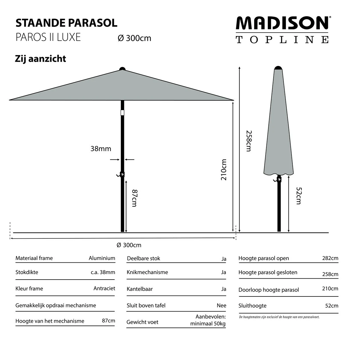 Parasol paros ii d300cm a tilt taupe