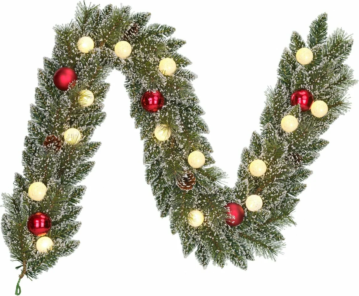 De Black Box Slinger Kaprun brengt direct de warme kerstsfeer in huis. Deze prachtige kerstslinger is gemaakt van hoogwaardig PVC en rijk versierd met groene dennentakken en glanzende rode kerstballen. De combinatie van klassiek groen en feestelijk rood zorgt voor een traditionele uitstraling die perfect past bij elk interieur tijdens de feestdagen.