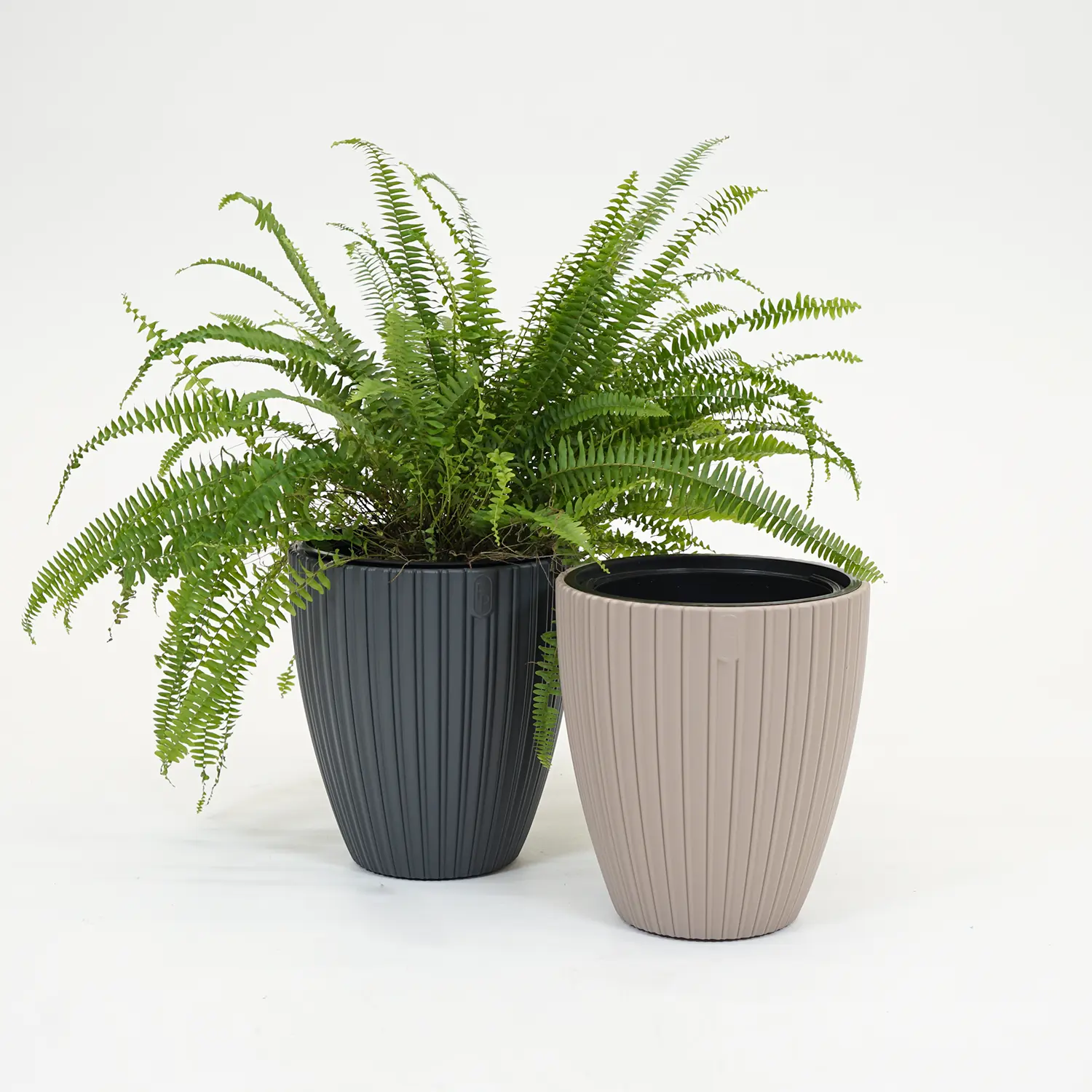 De pot is volledig weerbestendig en vorstbestendig waardoor hij probleemloos het hele jaar buiten kan staan. Daarnaast is hij waterdicht, zodat vloeren, terrassen of meubels beschermd blijven tegen vocht. Voor planten die drainage nodig hebben kun je een binnenpot of hydrokorrels gebruiken, omdat de pot zelf geen geïntegreerd drainagesysteem bevat.