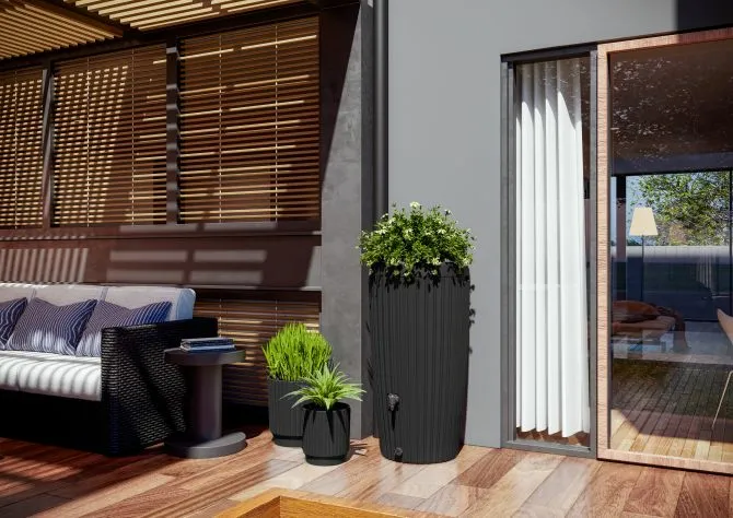 De Vita Mika Cyli 30 in antraciet is een praktische, moderne en betrouwbare bloempot die planten een stijlvolle plek geeft, zowel binnen als buiten.